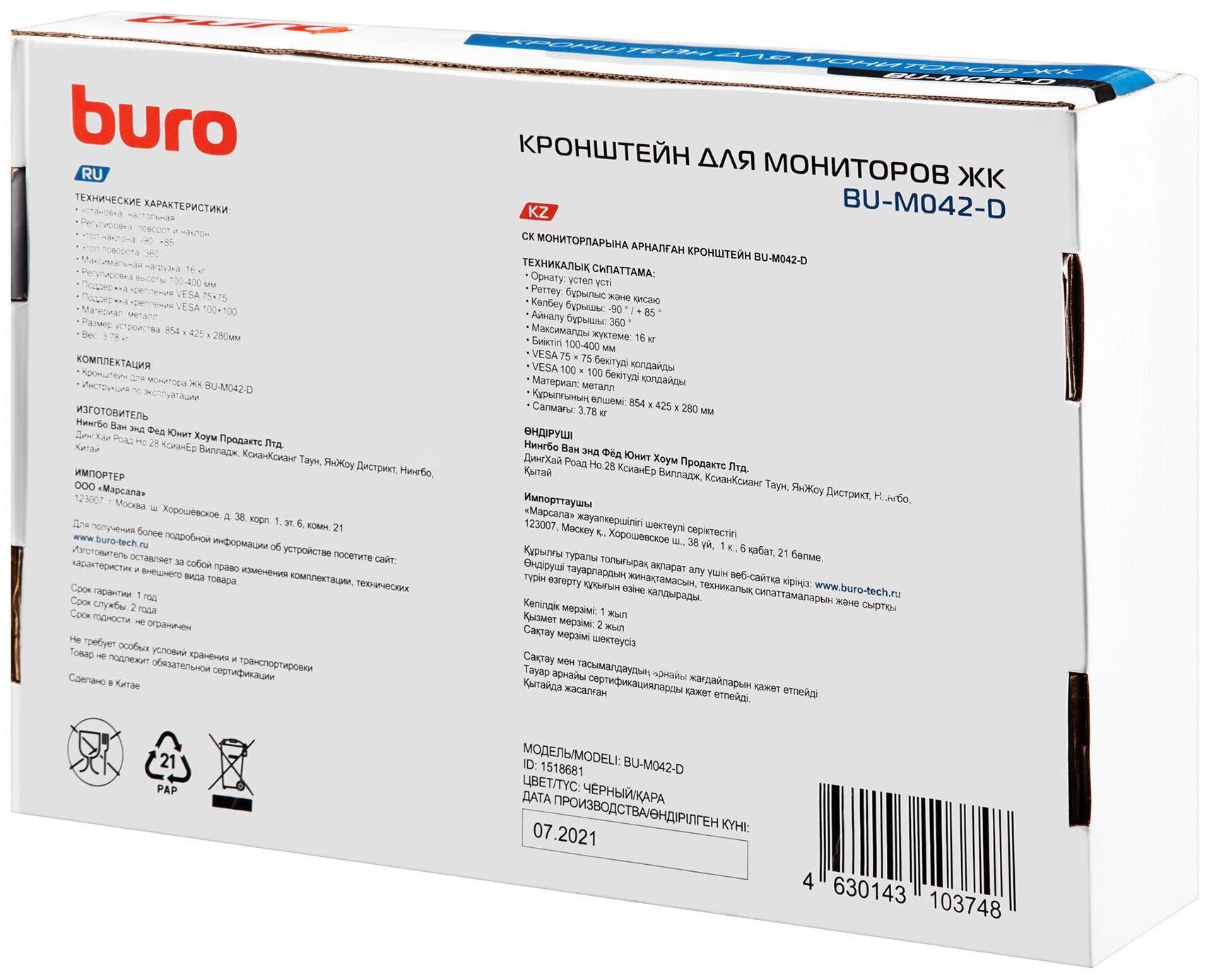 Кронштейн для мониторов ЖК Buro BU-M042-D черный 17"-32" максимум 16кг настольный поворот и наклон верт.перемещ.