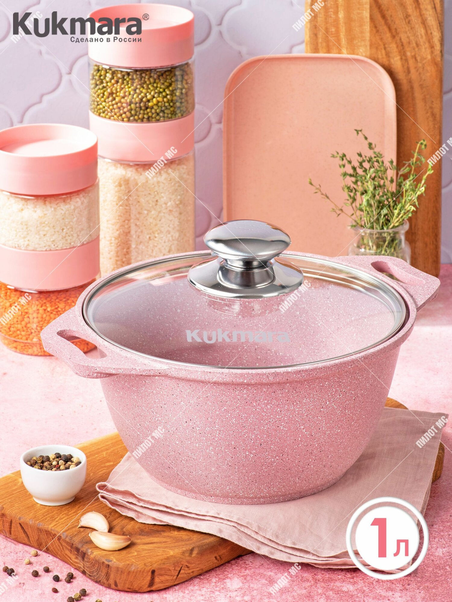 Кастрюли Кастрюля 1л Kukmara Кукмара стеклянная крышка Антипригарное покрытие Trendy style цвет rose - к11tsr