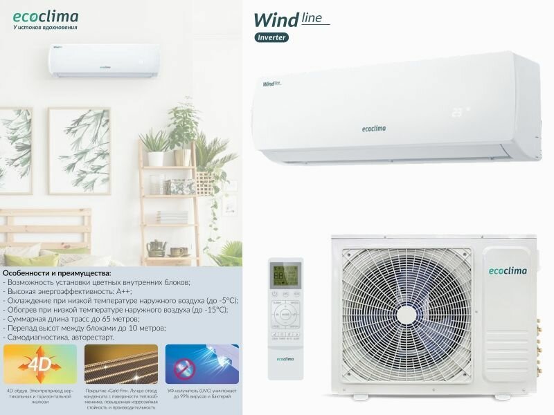 Сплит-система Ecoclima EC/I-12QC/ECW/I-12QCW Wind Line Inverter (White)