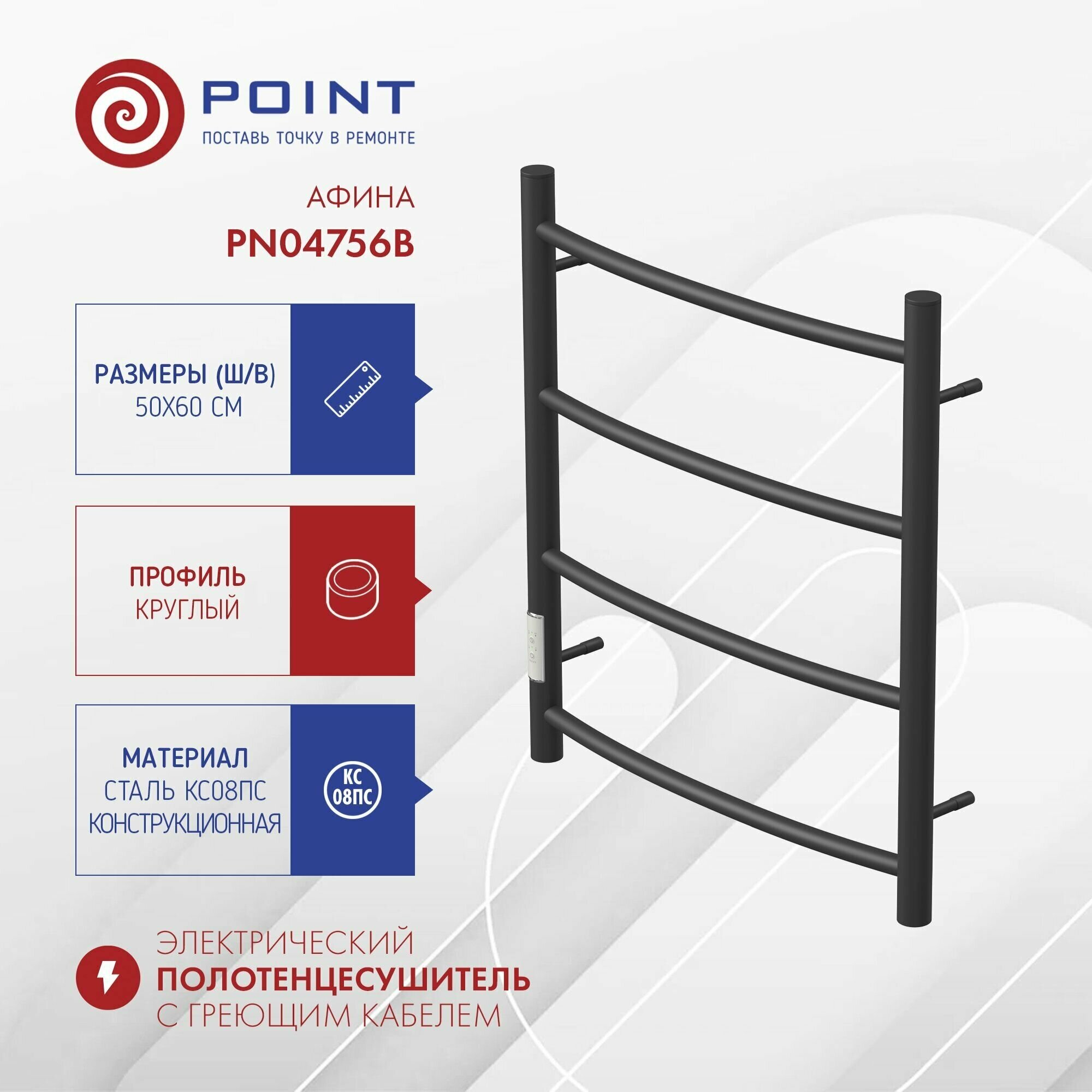 Полотенцесушитель электрический Point Афина PN04758B П6 500x800, черный