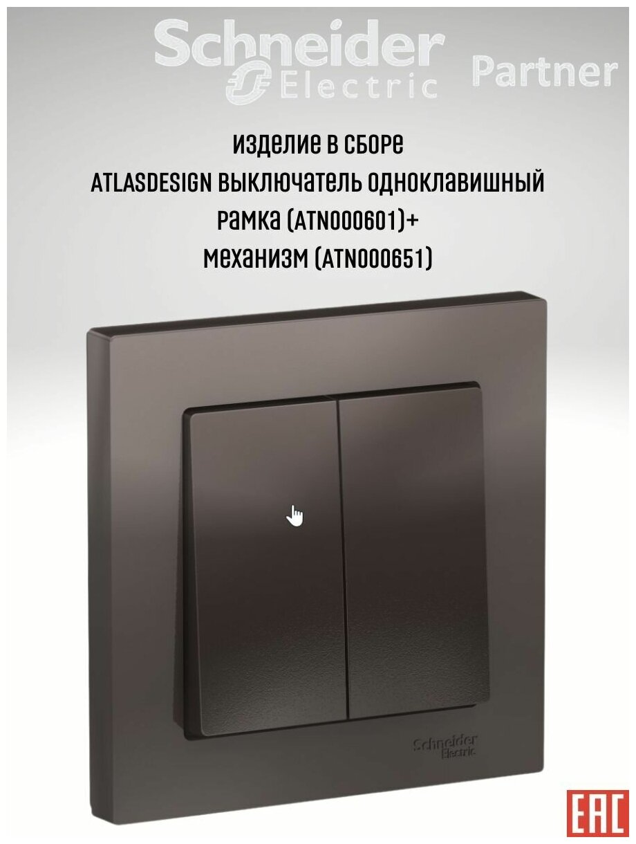 Выключатель 1-клавишный ATLASDESIGN, скрытый монтаж, алюминий | код. ATN000311 | Schneider Electric ( 1шт. )