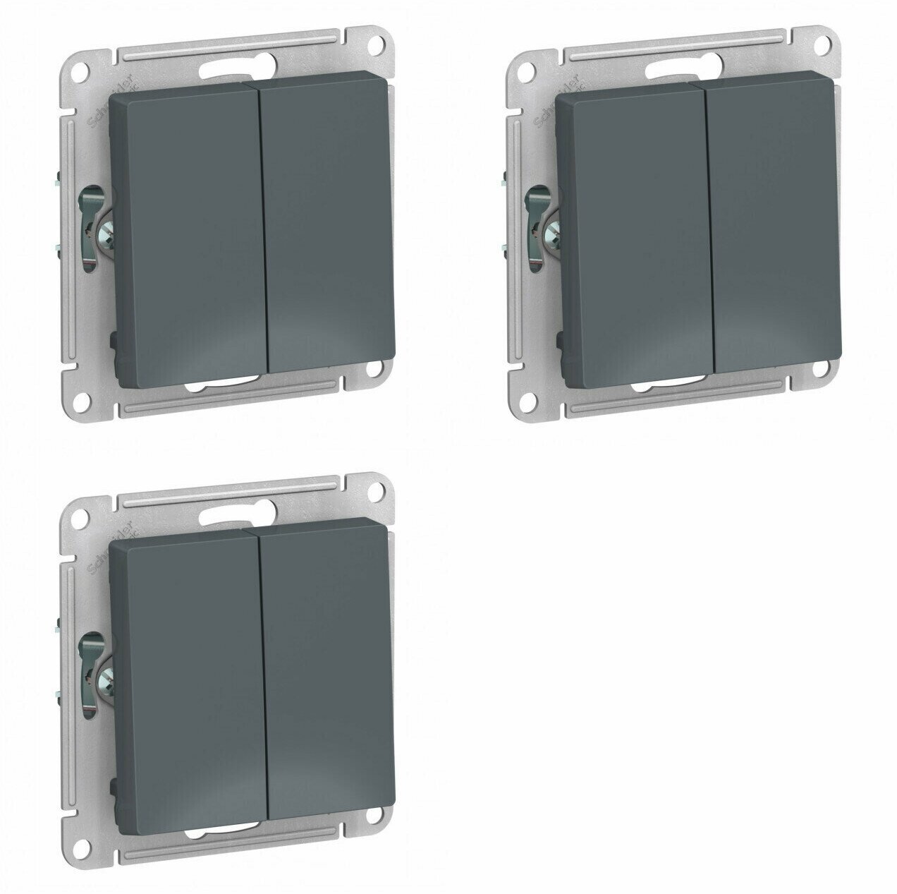 Выключатели Переключатель двухклавишный грифель сх.6, 10АХ, механизм Schneider Electric AtlasDesign (комплект 3шт)