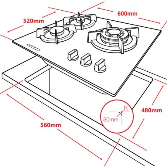 Варочная панель газовая HCG-279, стекло 3 конф, черная