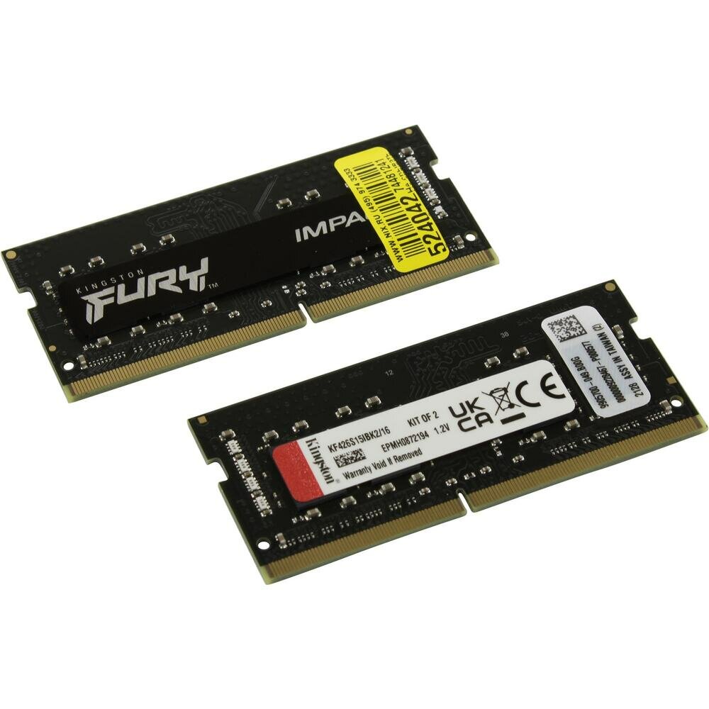 Оперативная память Kingston Fury Impact KF426S15IBK2/16 DDR4 - 2x 8ГБ 2666МГц, для ноутбуков (SO-DIMM), Ret