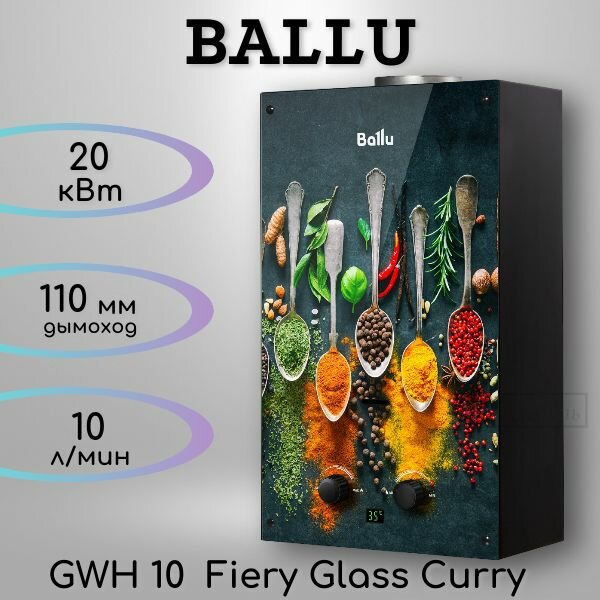 Водонагреватели Газовая колонка / Газовый проточный водонагреватель Ballu GWH 10 Fiery Glass Curry 10 л/мин