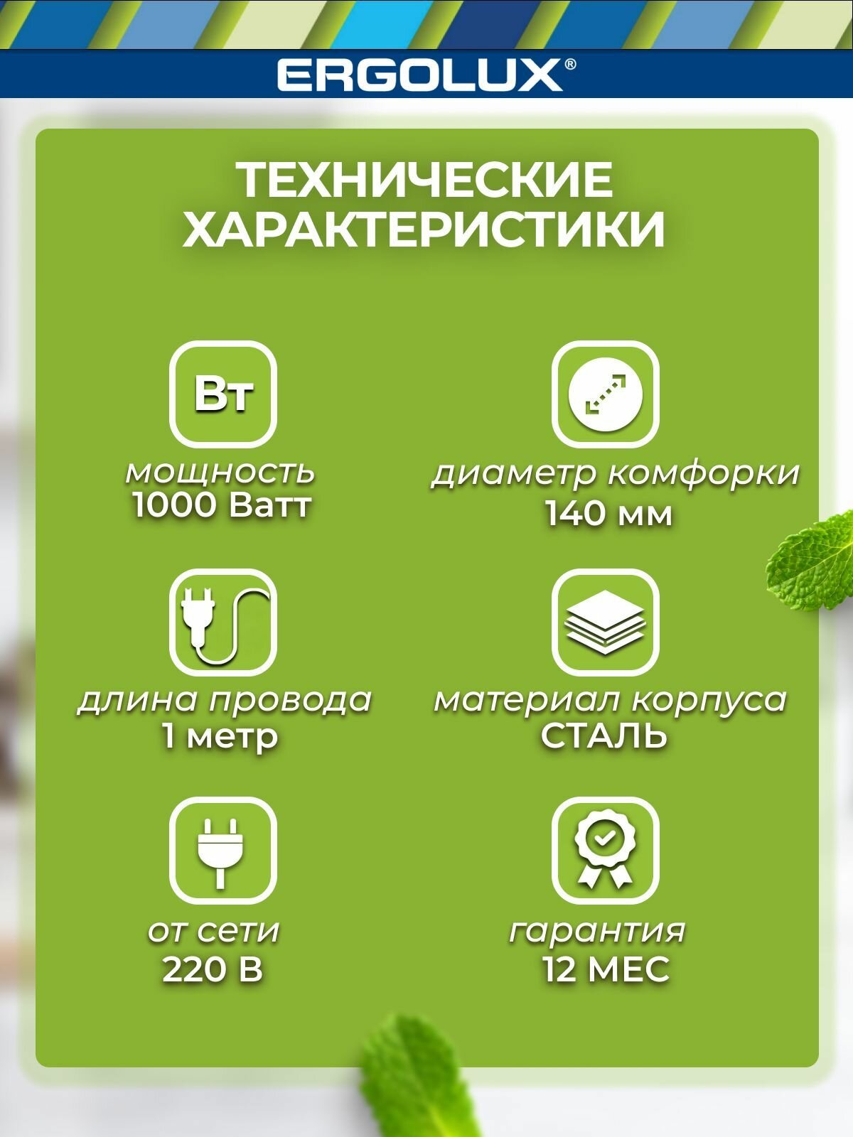 Электроплитка Ergolux ELX-EP01-C01, белая 890 ₽ Подробнее