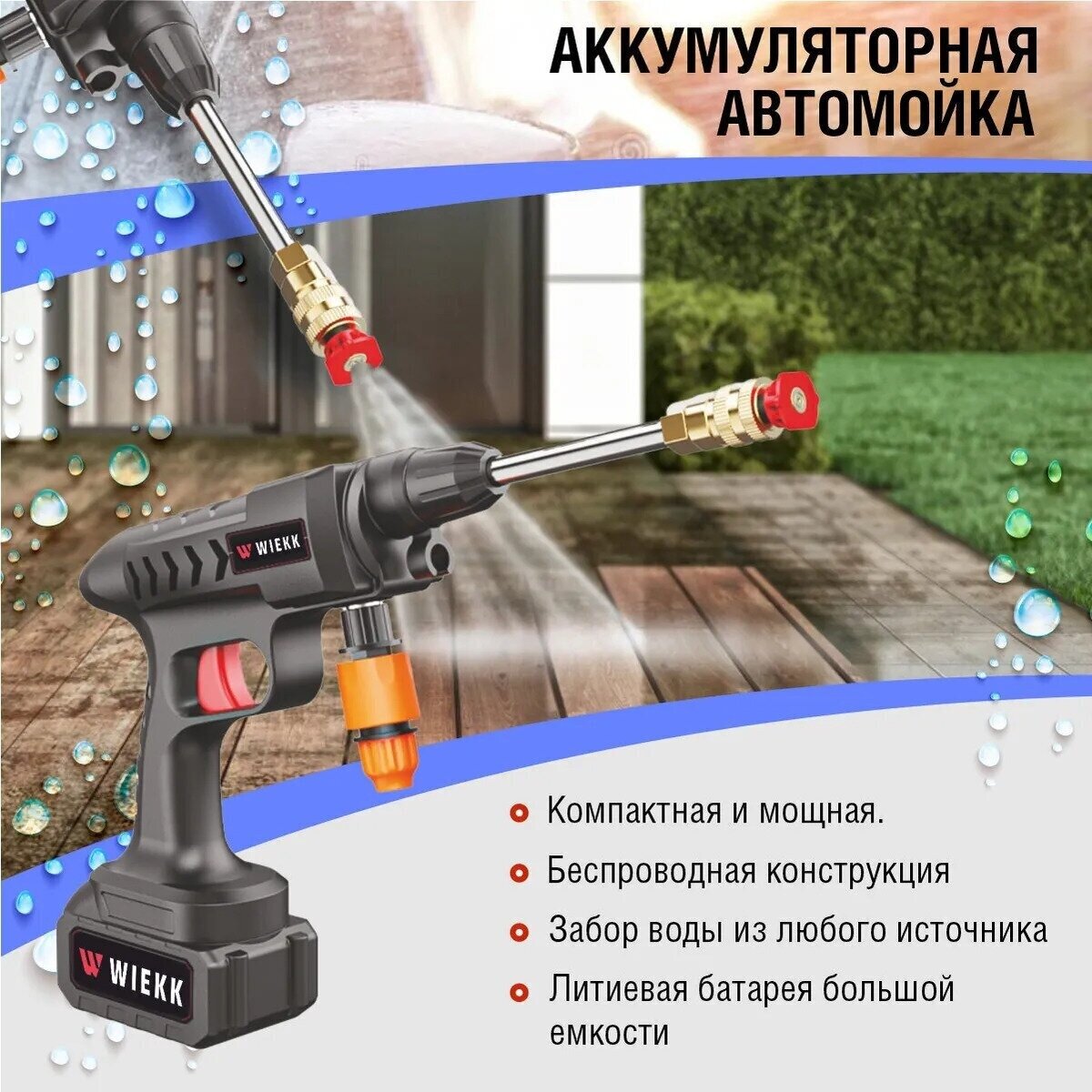 Мойки высокого давления Аккумуляторная мойка высокого давления WIEKK wkk01, 28 бар, 240 л/ч, с 1 АКБ и ЗУ