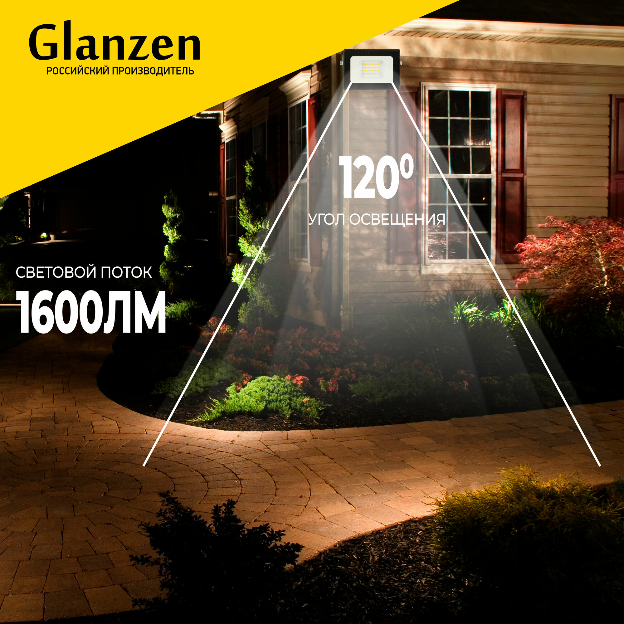 Прожекторы и уличное освещение Светодиодный уличный прожектор GLANZEN 20 Вт 6500К IP65 FAD-0002-20-SL