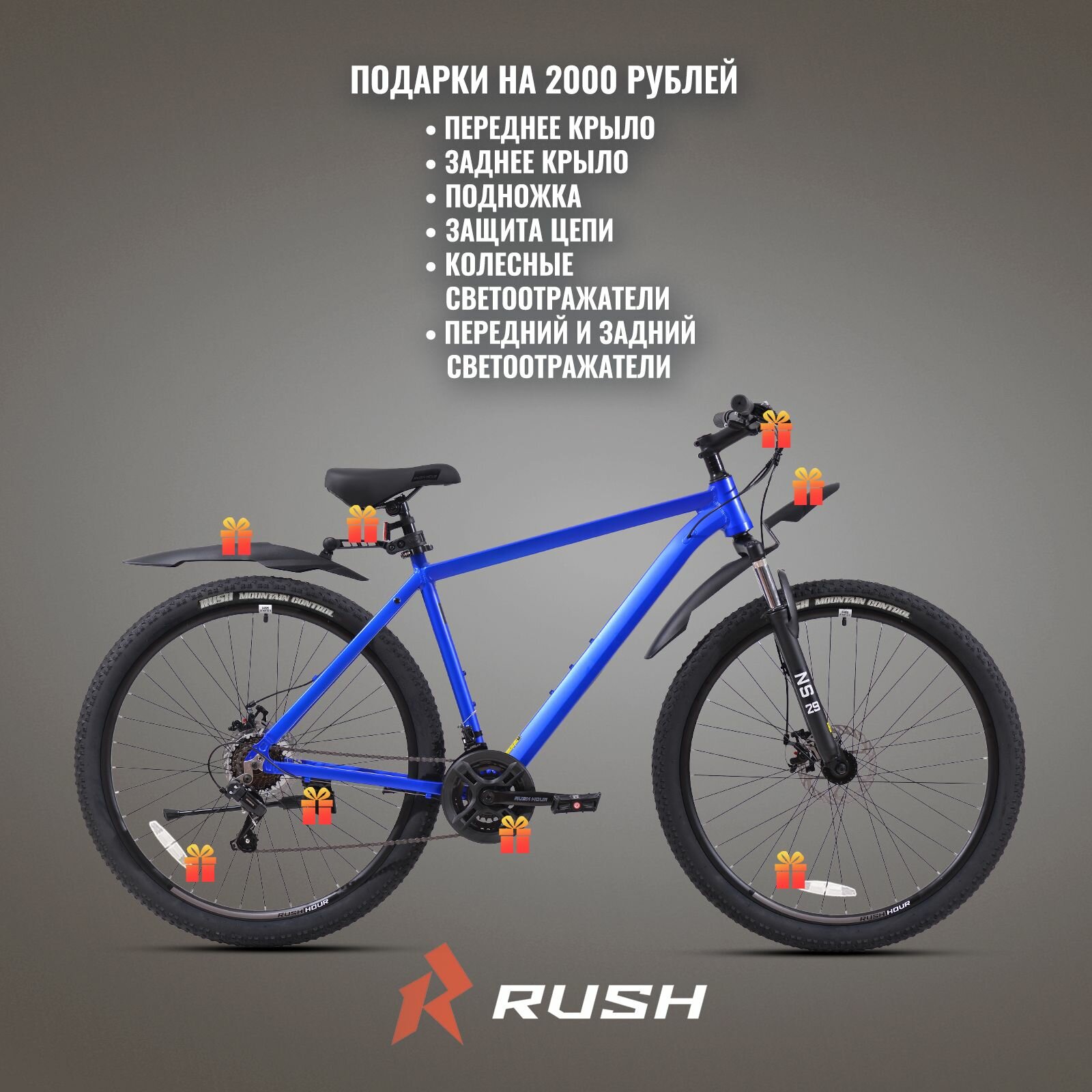 Велосипед алюминиевый горный дисковый 29" рост 190-210см 21 скорость синий рама 23" велик взрослый скоростной найнер RUSH HOUR XS 925 24 780 ₽ Подробнее