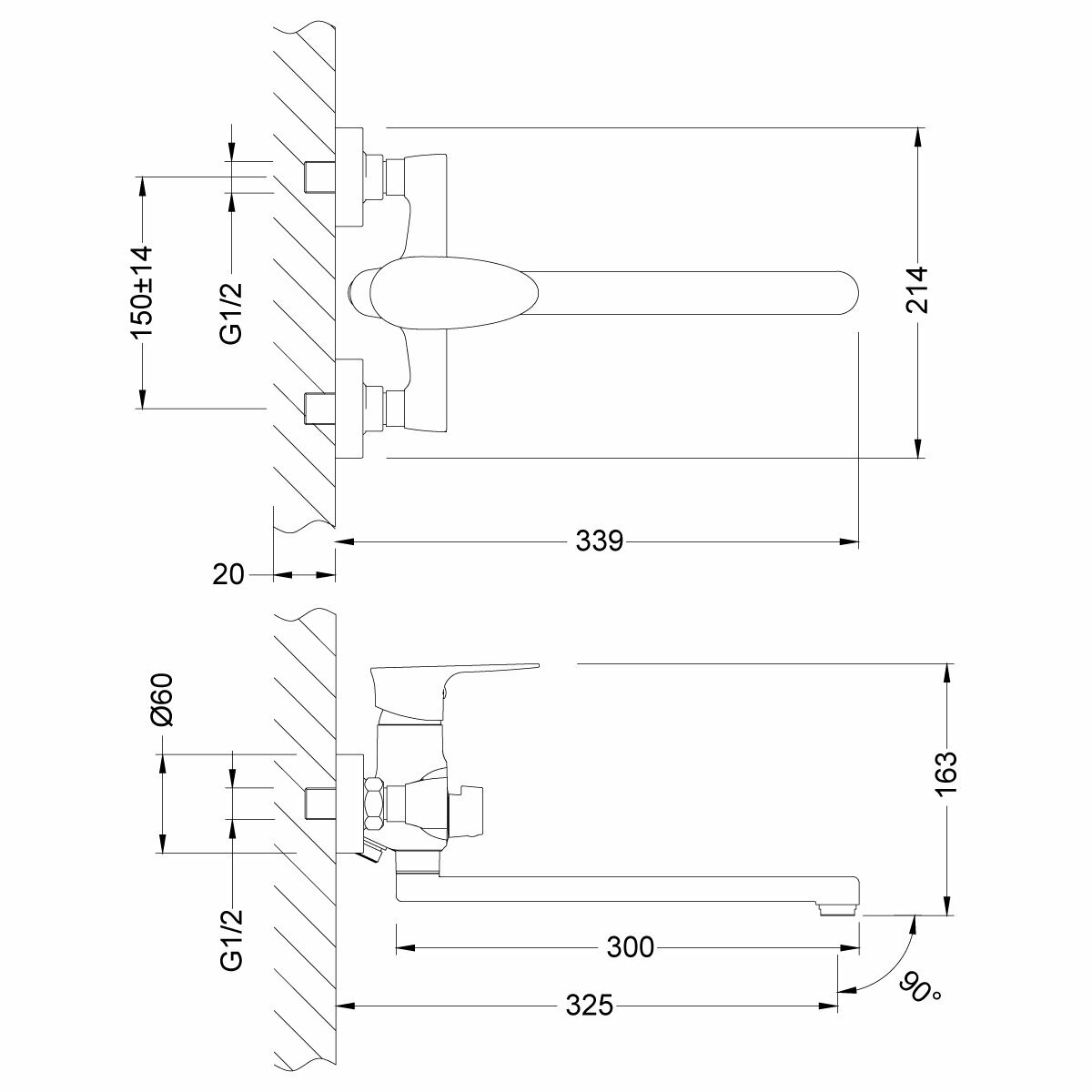 | Глубина конструкции | 339 мм (излив – 300 мм) |