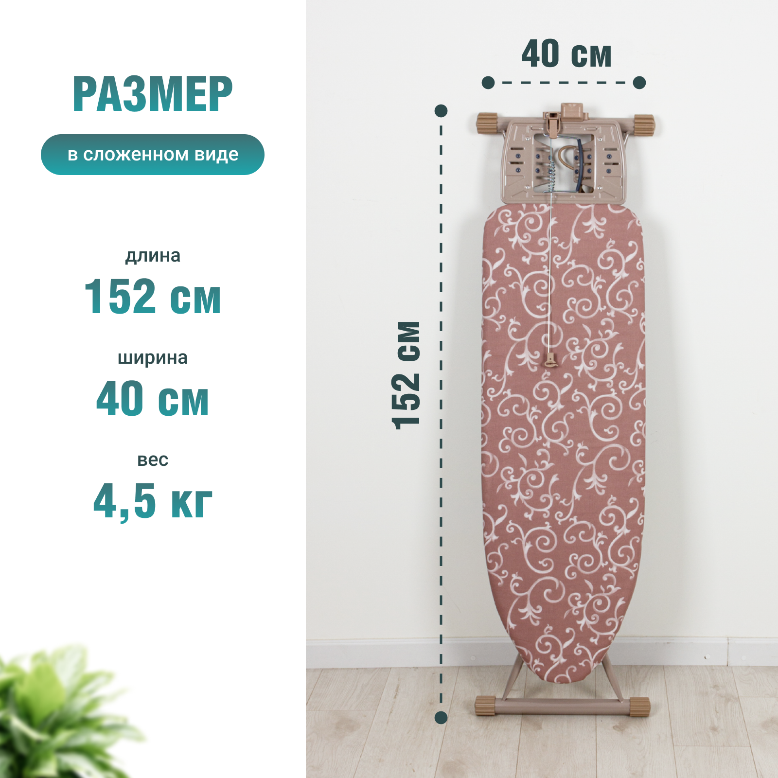 | Функции и возможности | подставка для утюга / регулировка высоты / подрукавник / полка для белья / встроенная розетка / держатель провода |
