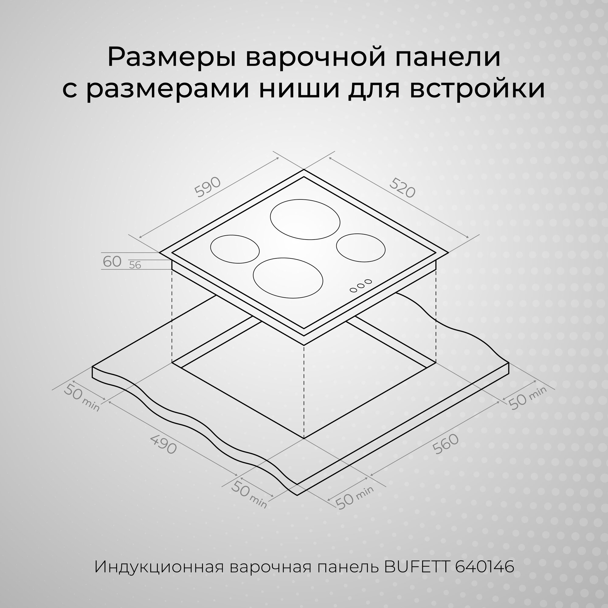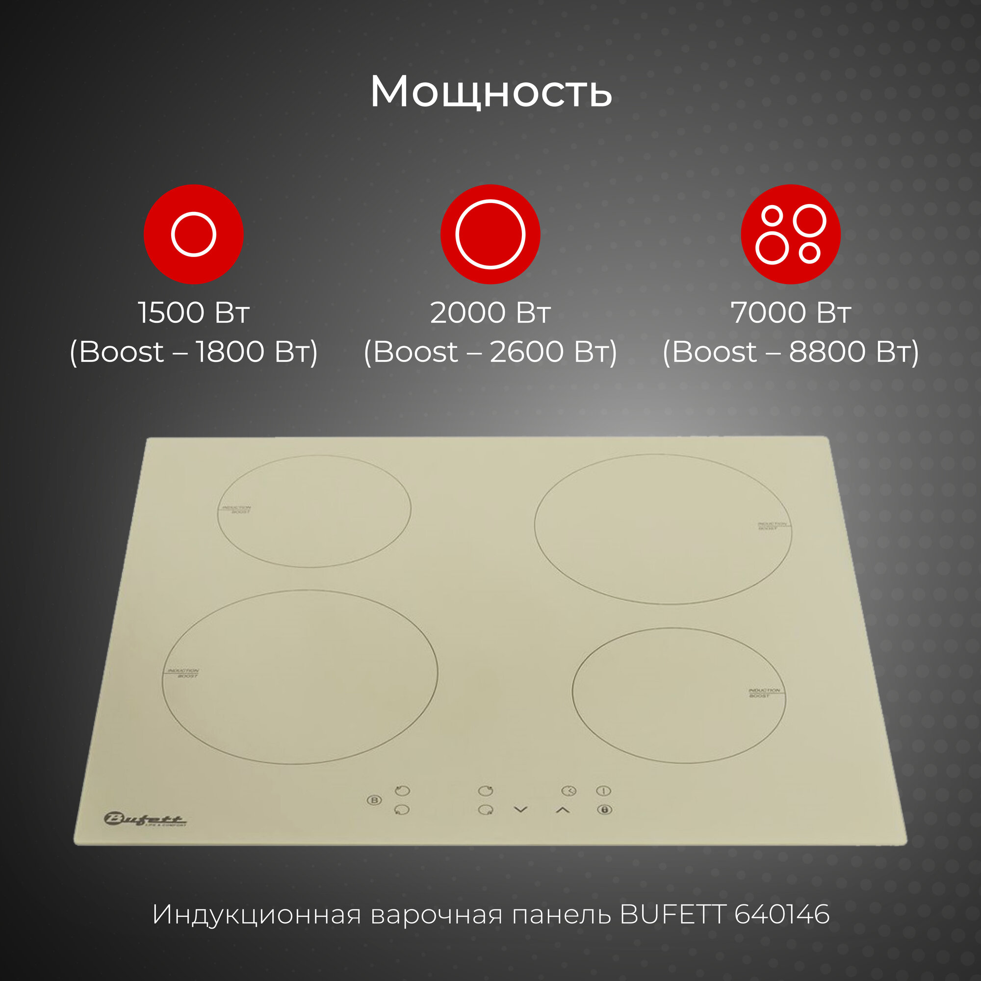 Варочные поверхности Варочная панель индукционная встраиваемая 4 конфорки BUFETT 640146, 7000 Вт, бежевая