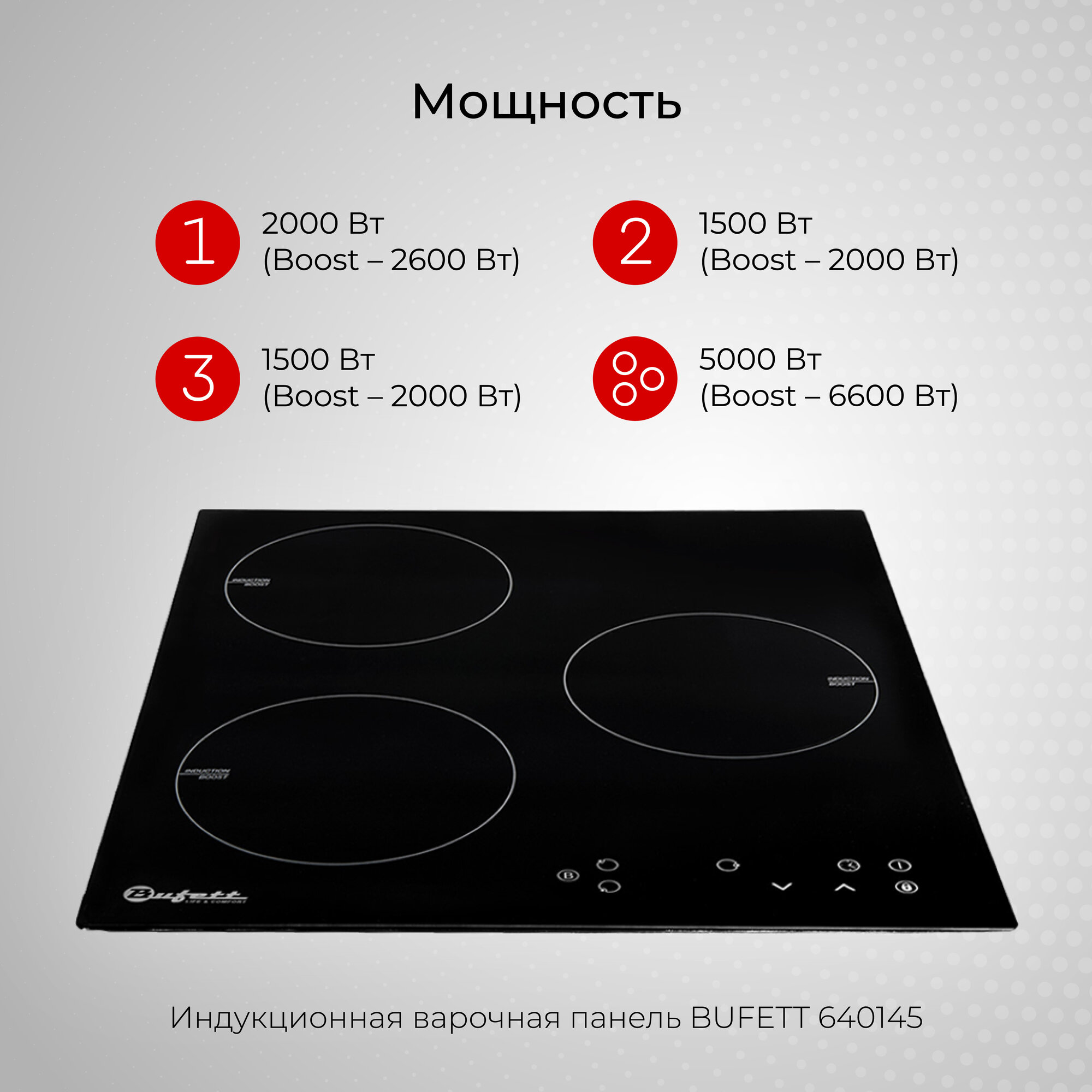 Варочные поверхности Варочная панель индукционная встраиваемая 3 конфорки BUFETT 640145, 5000 Вт