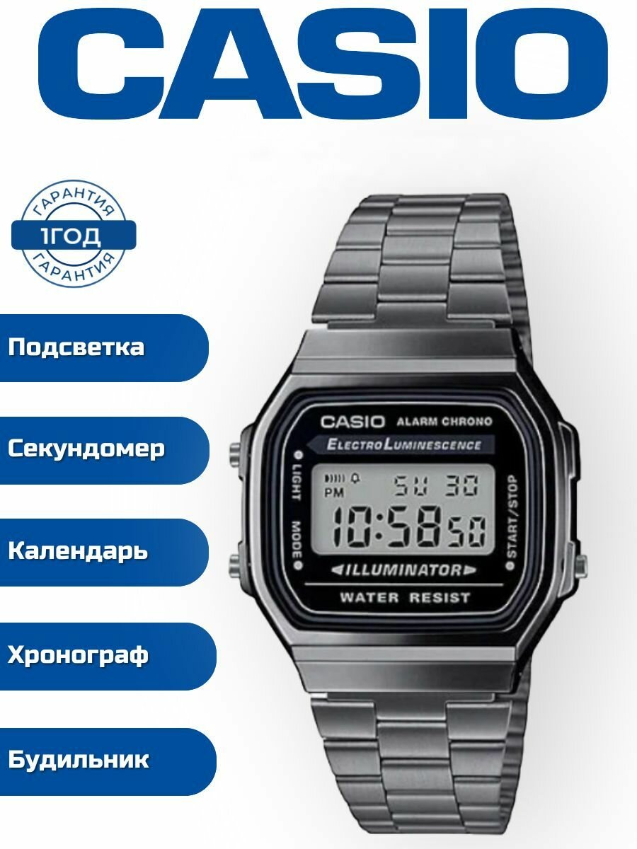 Наручные часы CASIO A168WGG-1A, серый, черный