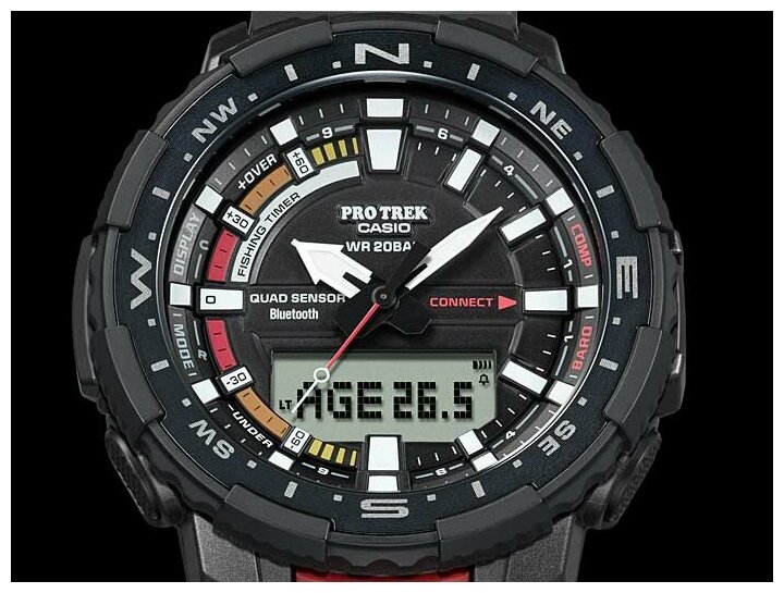 | Функции и возможности | будильник / секундомер / таймер / день недели / дата (число месяца) / дата (месяц года) / мировое время / компас / альтиметр (высотомер) / термометр / синхронизация по радиоканалу |