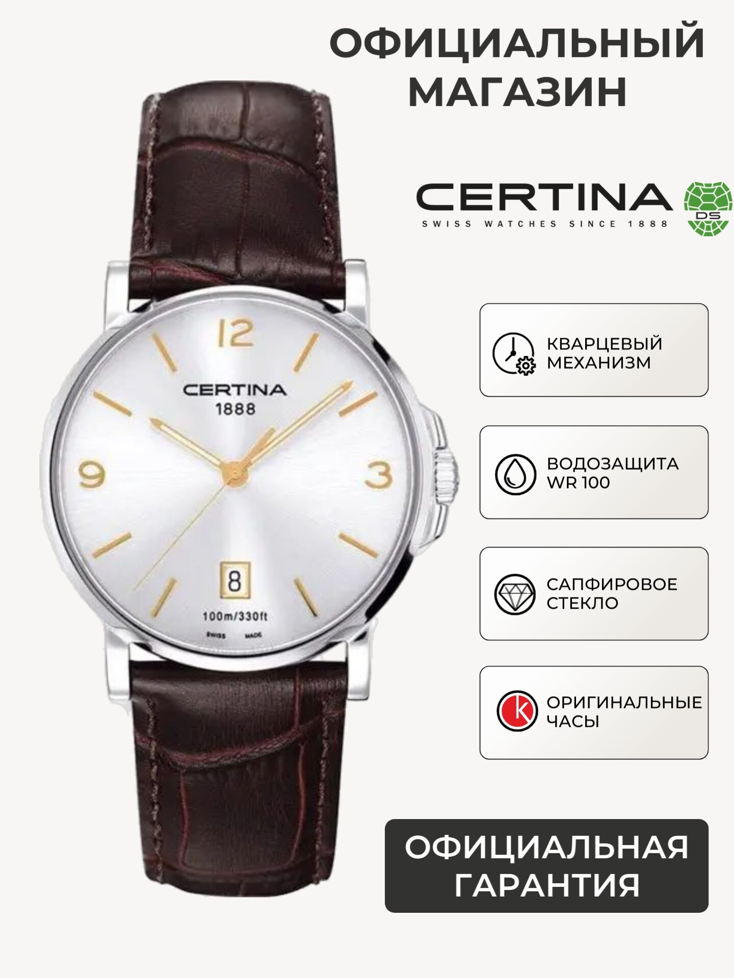 Швейцарские кварцевые часы Certina DS Caimano C017.410.16.037.01 на кожанном браслете, с водозащитой 10 бар и международной гарантией от производителя 39 800 ₽ Подробнее