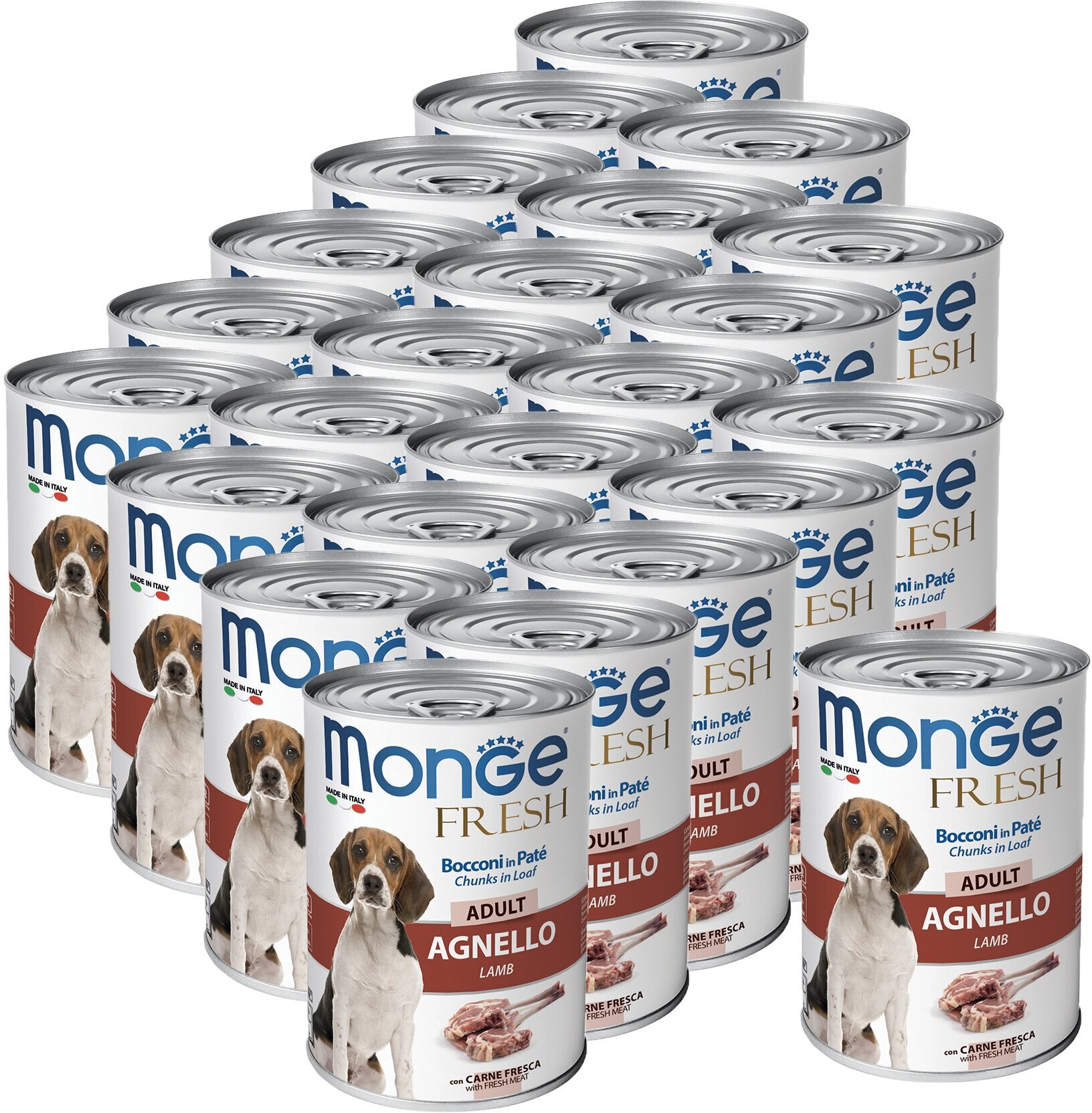 Корм для собак Влажный корм Monge Dog Fresh Chunks in Loaf для взрослых собак, мясной рулет из ягненка, консервы 24шт. x 400 г