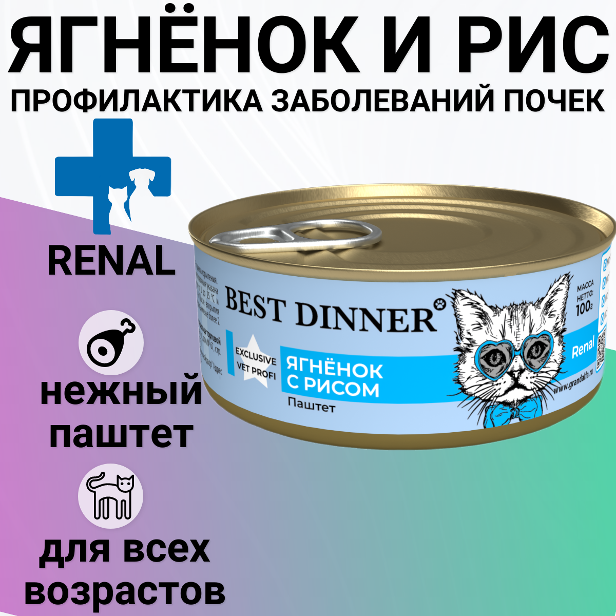 Корм для кошек BEST DINNER Vet Profi Exclusive Renal Корм влаж.ягнёнок с рисом д/кошек конс.100г