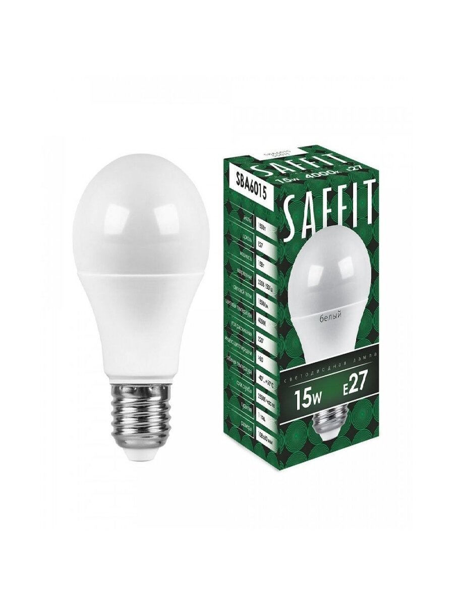 Лампа светодиодная Saffit SBA6015 55011, E27, A60, 15 Вт, 4000 К