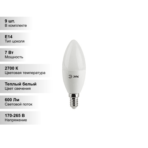 Лампочки (9 шт.) Светодиодная лампочка ЭРА В35 7Вт 170-265В 2700К E14