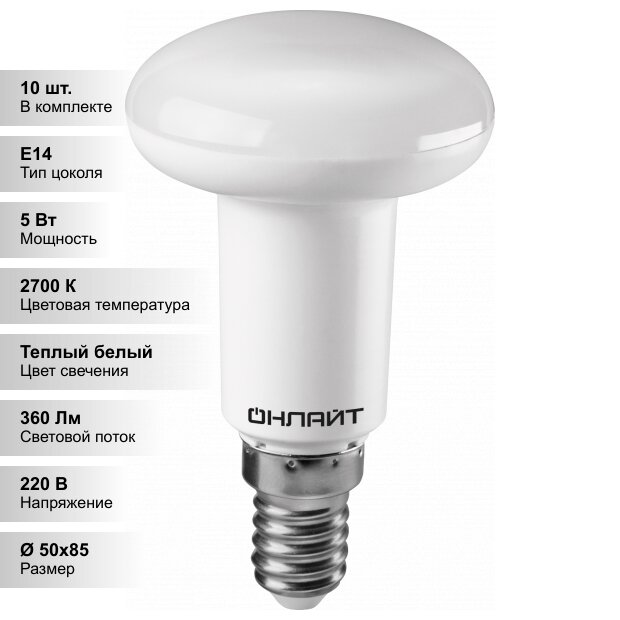 Лампочки (10 шт.) Светодиодная лампочка онлайт R50 5Вт 230В 2700K E14