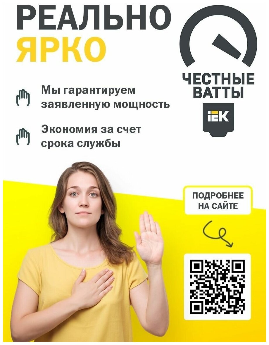 (3 шт.) Светодиодная лампочка IEK ЛОН A60 E27 7W(630lm) 6500К 6K 110х60 ECO LLE-A60-7-230-65-E27 Холодный белый. Цоколь E27 770 ₽ Подробнее