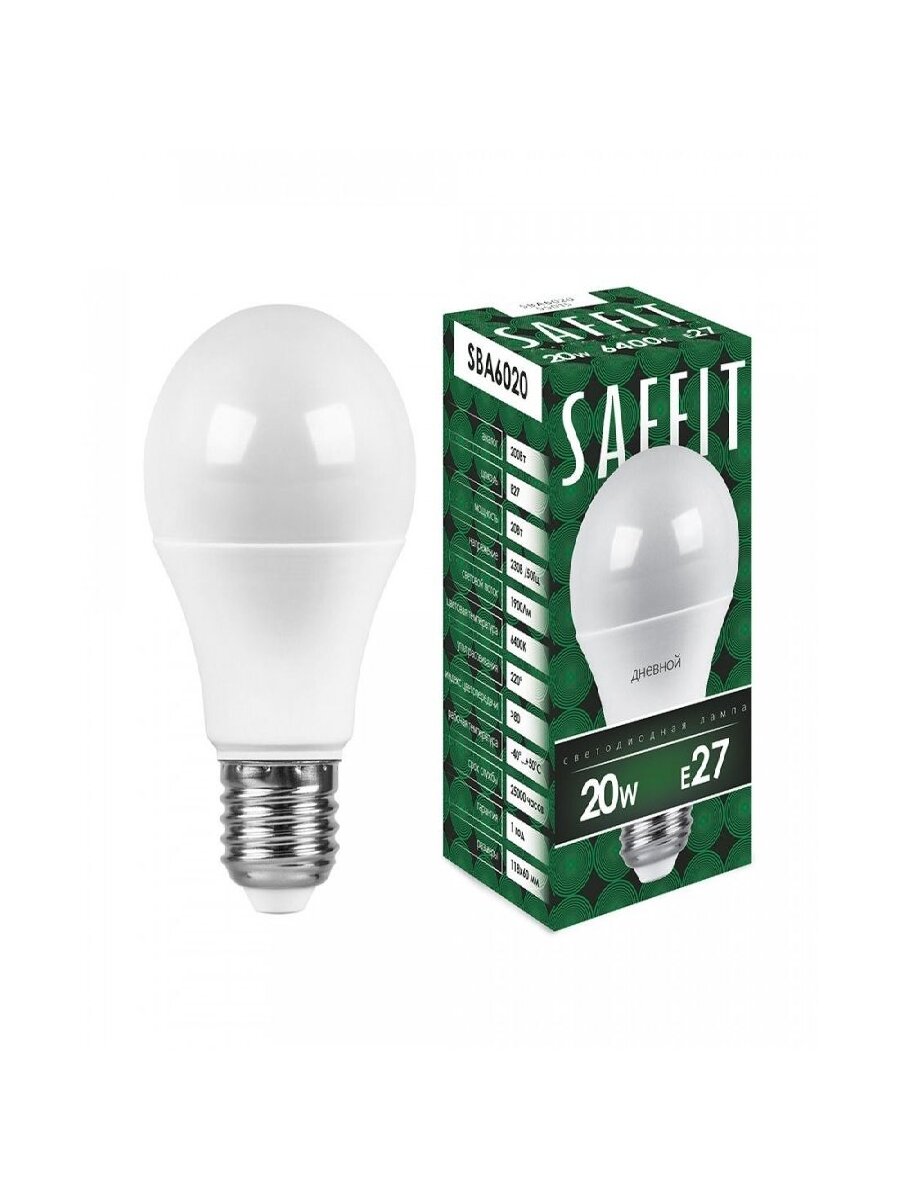 (5 шт.) Светодиодная лампочка Saffit ЛОН А60 E27 20W(1900Lm) 6400K 6K матовая 112x60 SBA6020 55015 Холодный белый. Цоколь E27 1 016 ₽ Подробнее