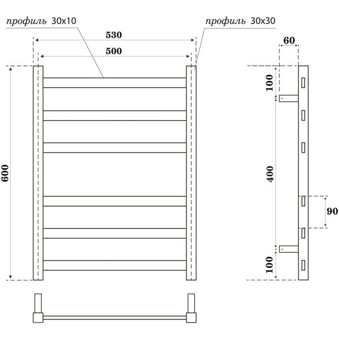 Электрический полотенцесушитель Point Серии Меркурий П8 500x800 диммер справа, хром PN83858