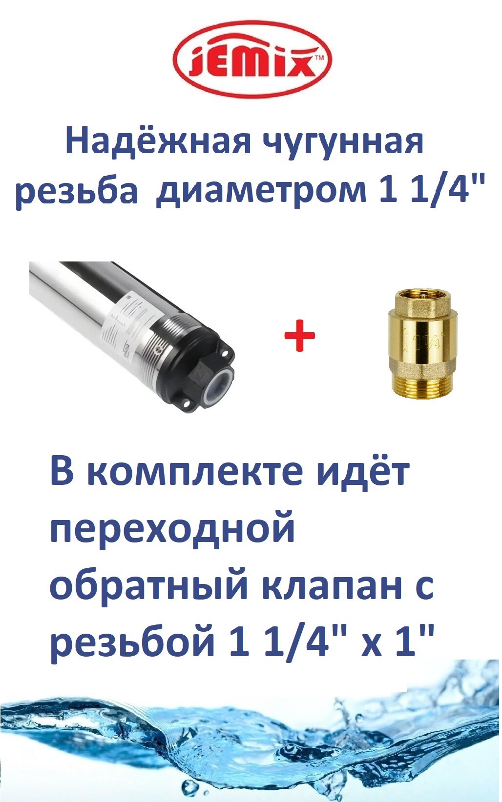 Насос скважин, Jemix, 1 1/4 '', верх забор, 50 м, 750 Вт, d76 мм, напор60 м, 2 м³/ч, с защитой, СН 3