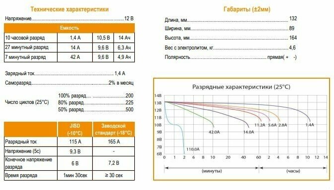 Мото, Скутер 12В 14 А.ч. Delta, 165А,Пр.пол., Ст1214.1 (Yb14bs) (132X88x164) (Залитый) Agm Аккумулят DELTA battery арт. CT12141