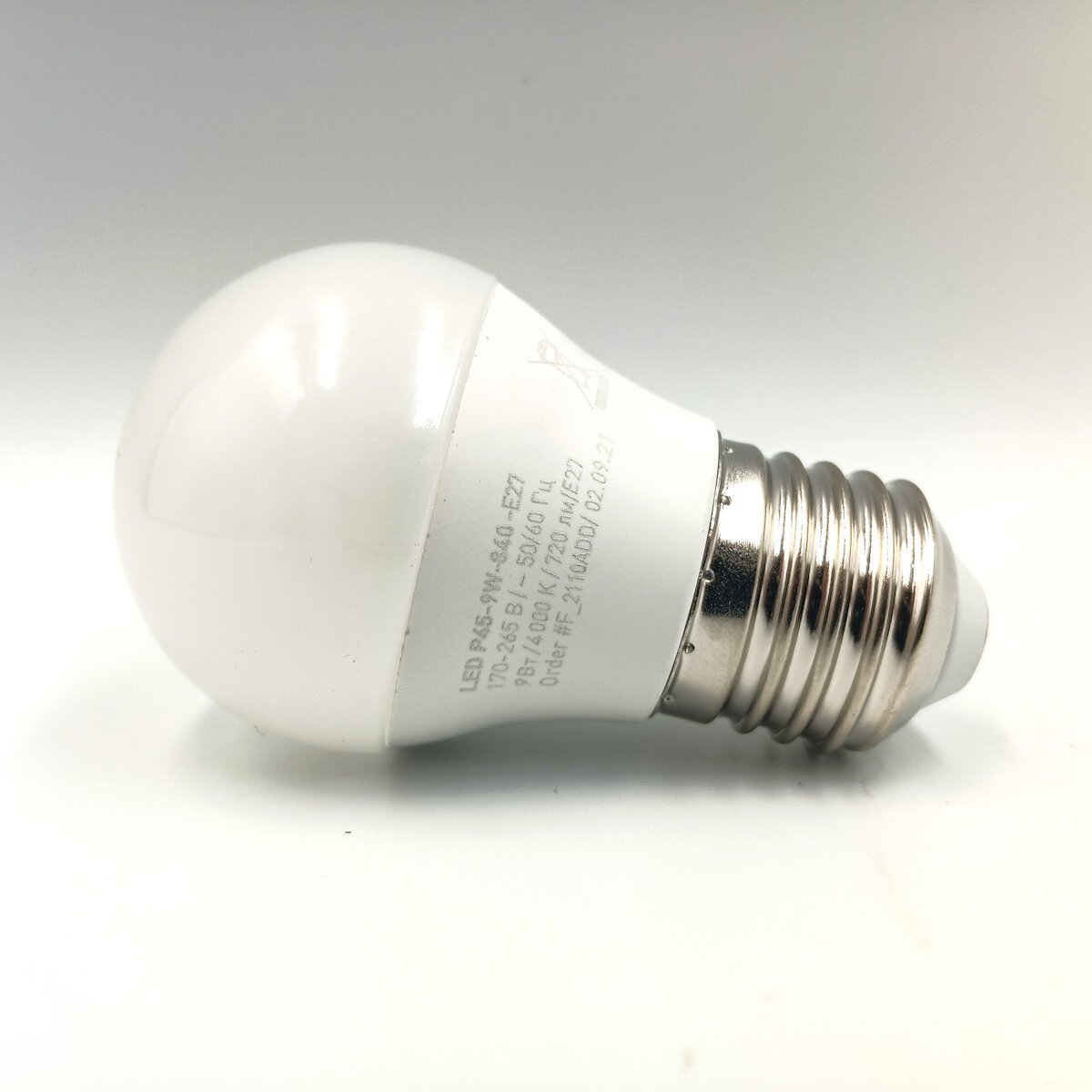 Лампочки (9 шт.) Светодиодная лампочка ЭРА LED smd P45, мощность 9 Вт, напряжение питания 170-265 В, цветовая температура 4000 К, нейтральный белый свет, цоколь E27, размер 45х82 мм