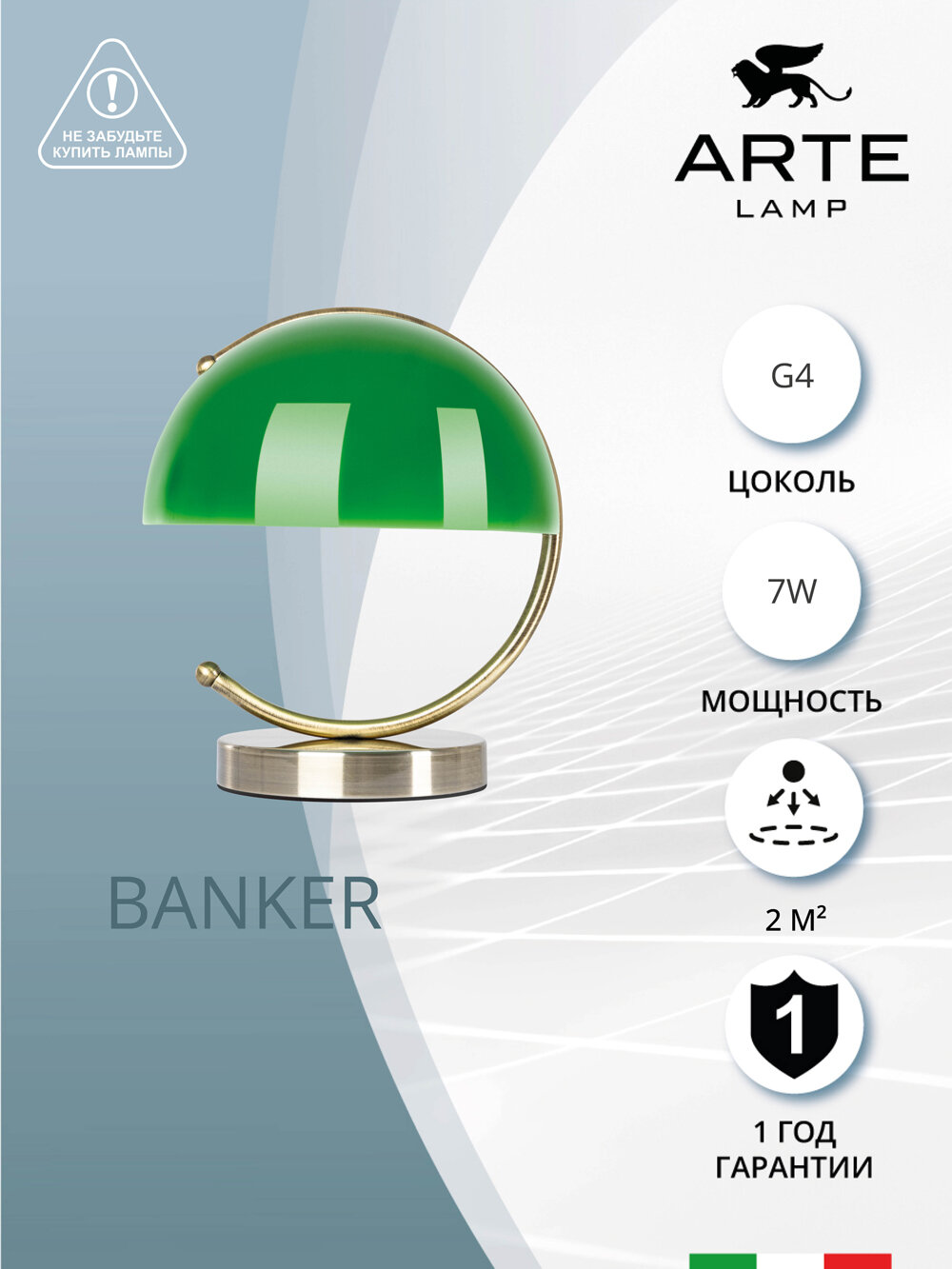 Настольная лампа Arte Lamp BANKER A2492LT-1AB, E27, кол-во ламп:1шт, Зеленый