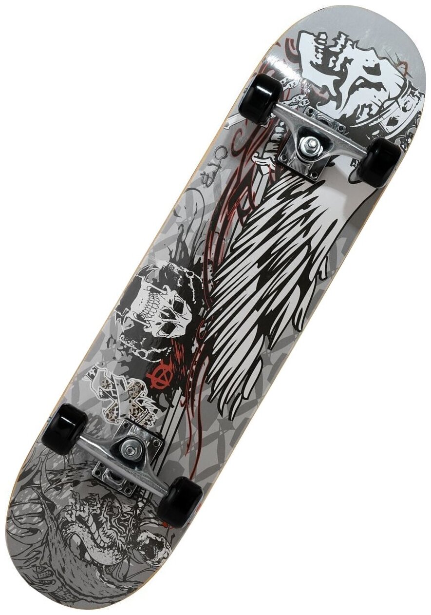 Лучшие цены. Дека: вогнутая с двойным загибом. Размер деки: 31x8" (79 x 20 см.) Материал деки: китайский клен, 9 слоев. Верх деки: нескользящее покрытие. Низ деки: рисунок. Подвеска: 5" алюминиевая. Материал колес: PU. Размер колес: 54x36 мм. Подшипники: ABEC-5 RS. Амортизатор: PU. Максимальная нагрузка: 80 кг. Упаковка: Термоусадочная пленка с коробкой. Страна производства: Китай. Магазины в вашем городе.