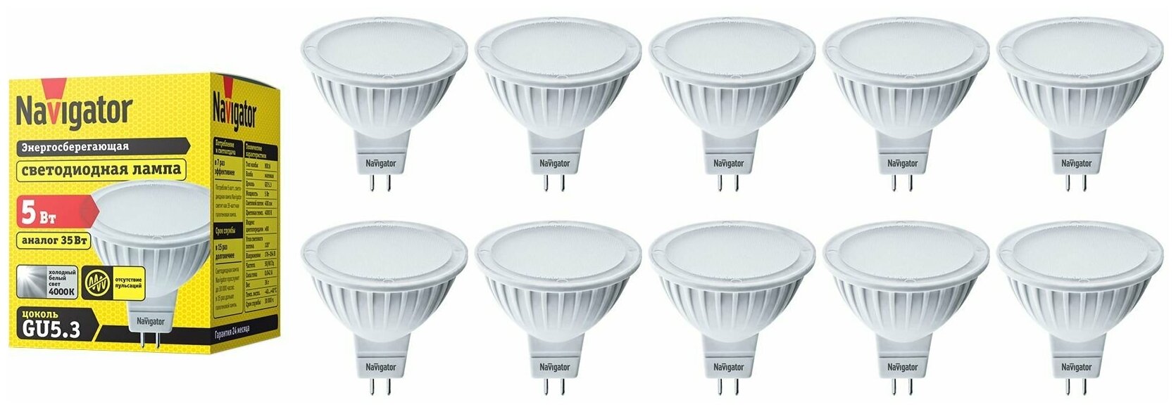 Лампочки (10 шт.) Светодиодная лампочка Navigator MR16 5Вт 230В 4000K GU5.3