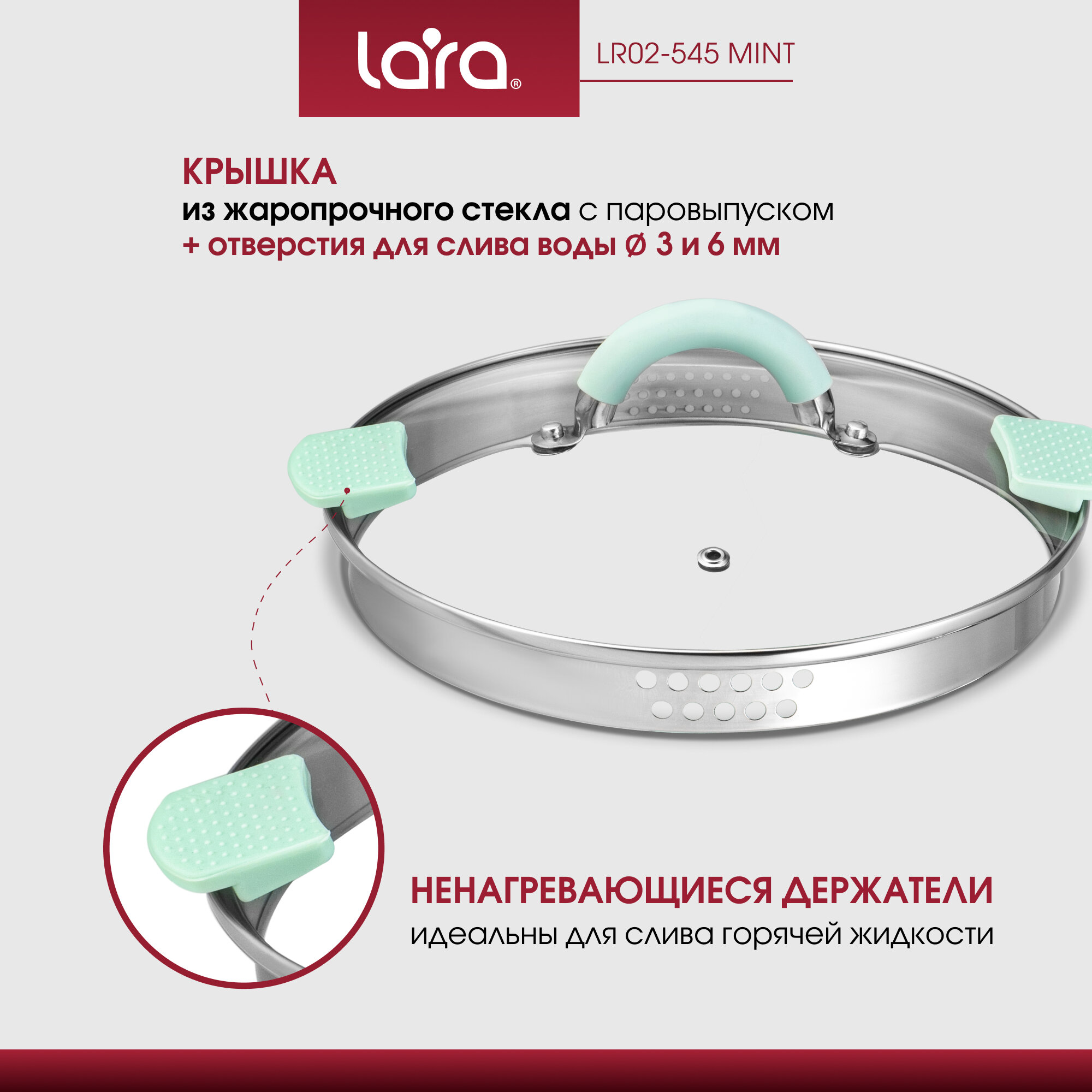 Кастрюля LARA LR02-544 MINT 5,7л, d24 см, с крышкой дуршлаг, для всех видов плит