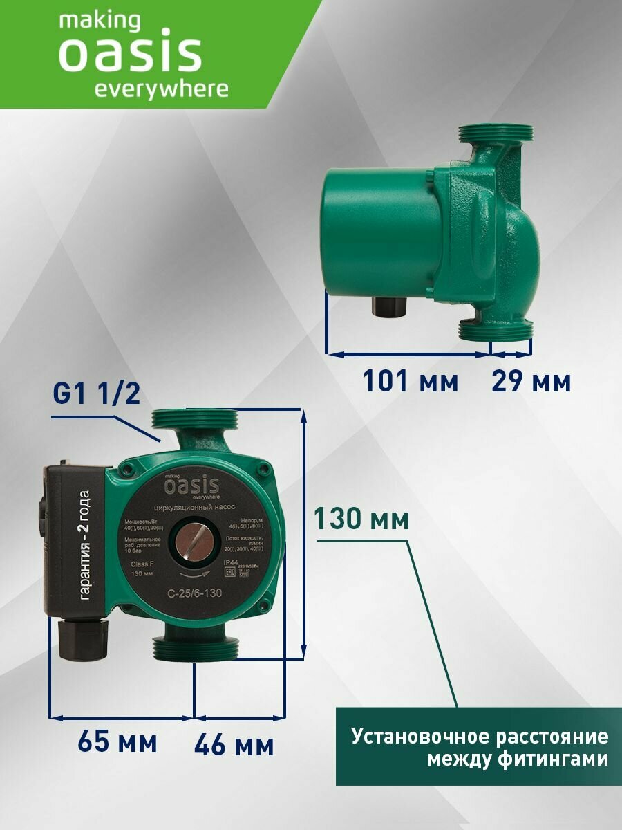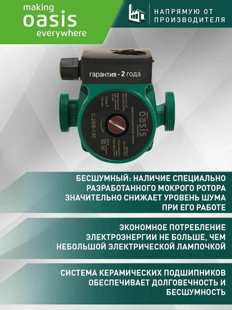 Циркуляционные насосы Насос циркуляционный для отопления making Oasis everywhere C-25/6-130, 90 Вт, напор 6 м, 40 л/мин
