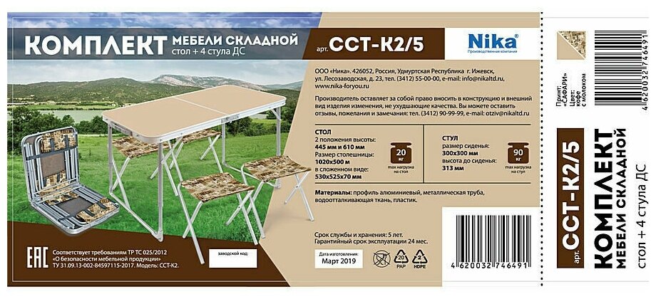 Набор складной мебели Nika ССТ-К2 Metal 4 259 ₽ Подробнее