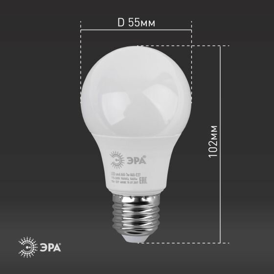 ЭРА Лампа светодиодная ЭРА E27 9W 2700K матовая LED A60-9W-827-E27 Б0032246