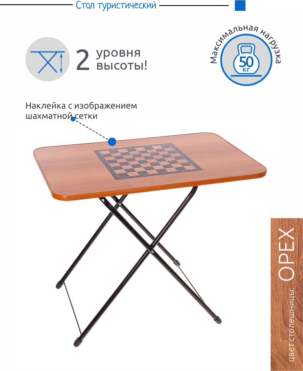 Стол туристический, игровой, "Шахматы" тсти, 75 х 50 х 50 / 62 см
