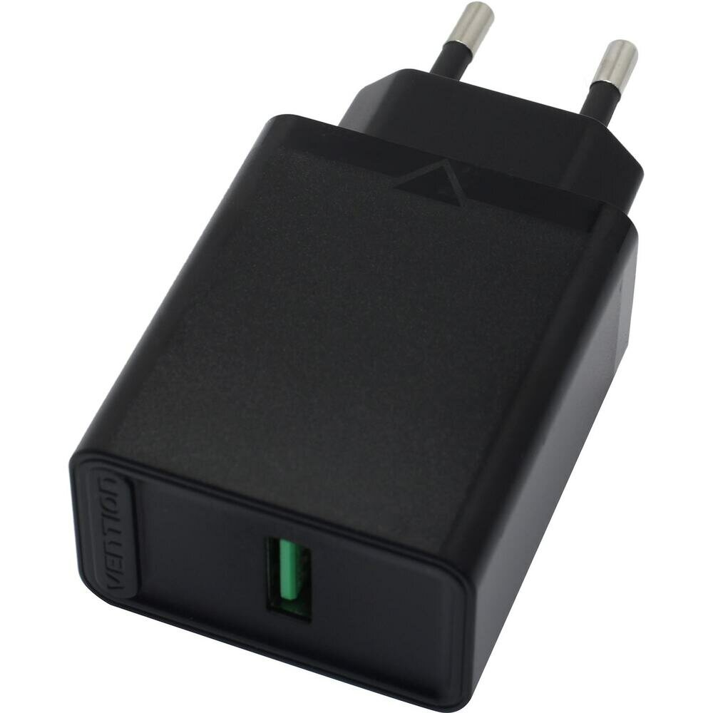 Зарядки для гаджетов Сетевое зарядное устройство Vention FABB0-EU USB2.0 QC 3.0 черное