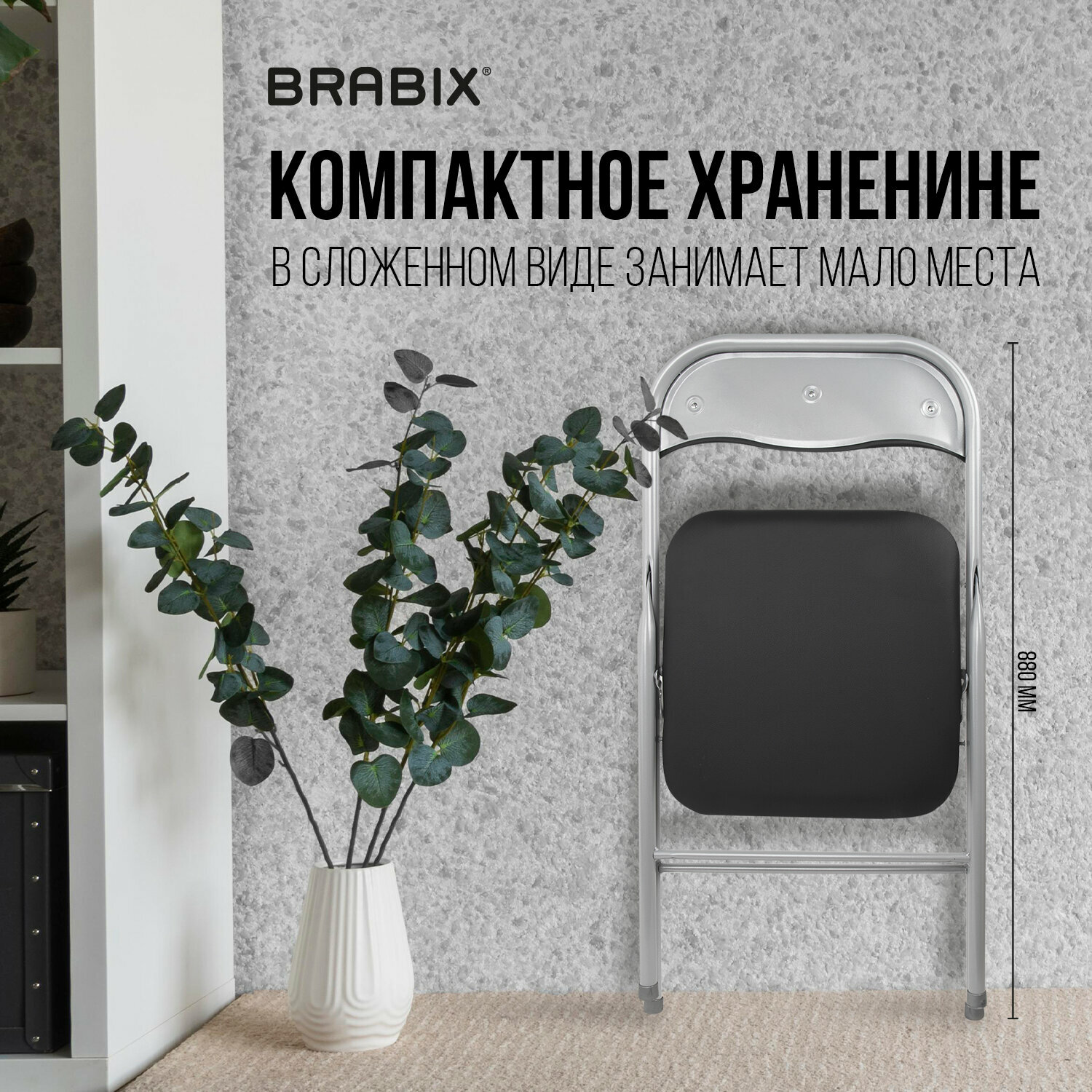 Стулья Стул складной Brabix Golf Cf-007, серебристый каркас, кожзам чёрный, 532891