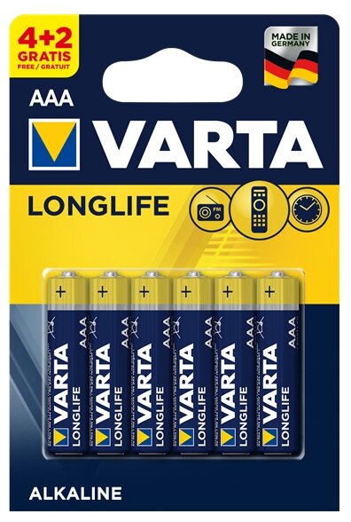 Батарейка VARTA LONGLIFE AAA, в упаковке: 6 шт.