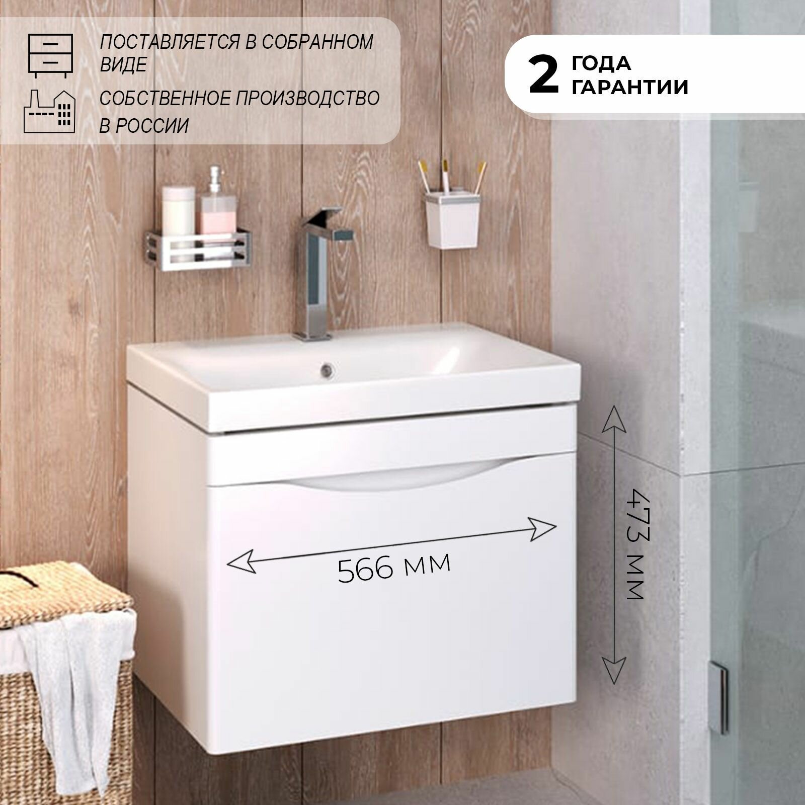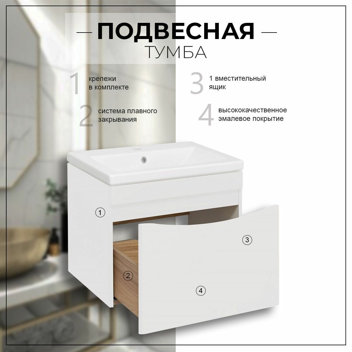 Тумба под раковину / Runo / Афина 60 подвесная / эмаль / цемент / под умывальник Moduo 60