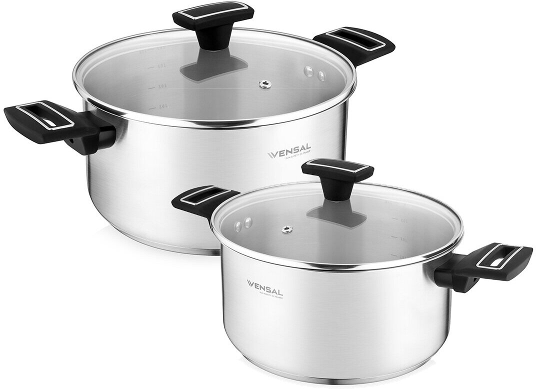 Кастрюли Набор кастрюль VENSAL из нержавеющей стали с крышками, 3 и 5,4 литра VS1504