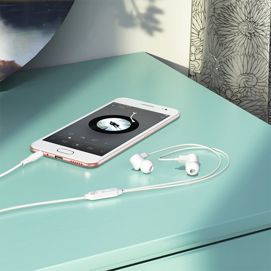 Наушники Borofone BM61 Wanderer, вакуумные, микрофон, Jack 3.5 мм, кабель 1.2 м, белые