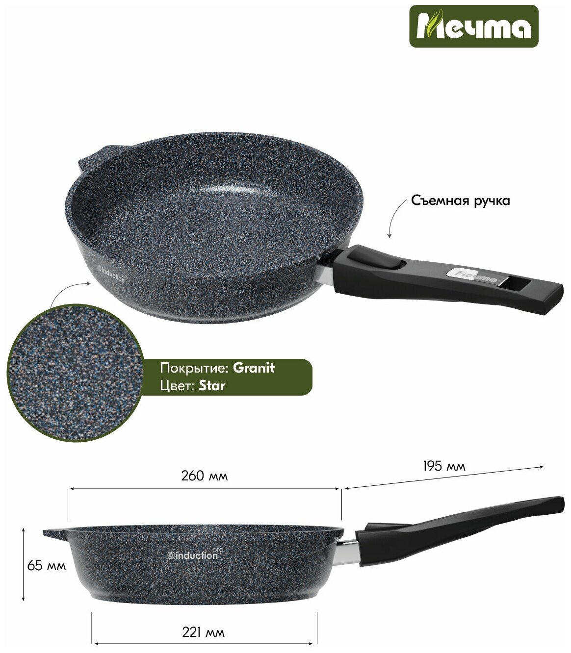 Сковорода Мечта Посуда Мечта Гранит star Induction Pro съемная ручка 26 см (026803И)