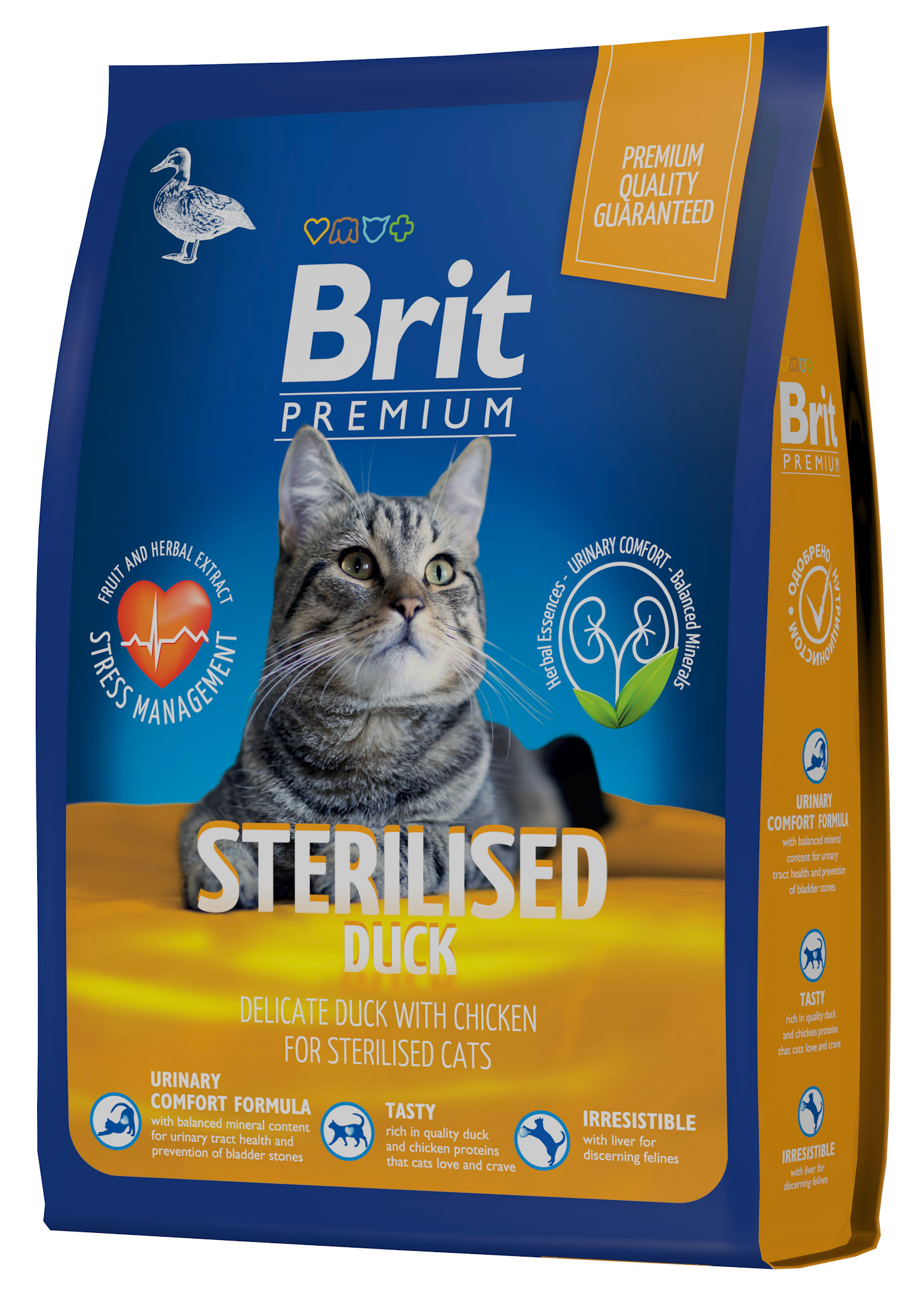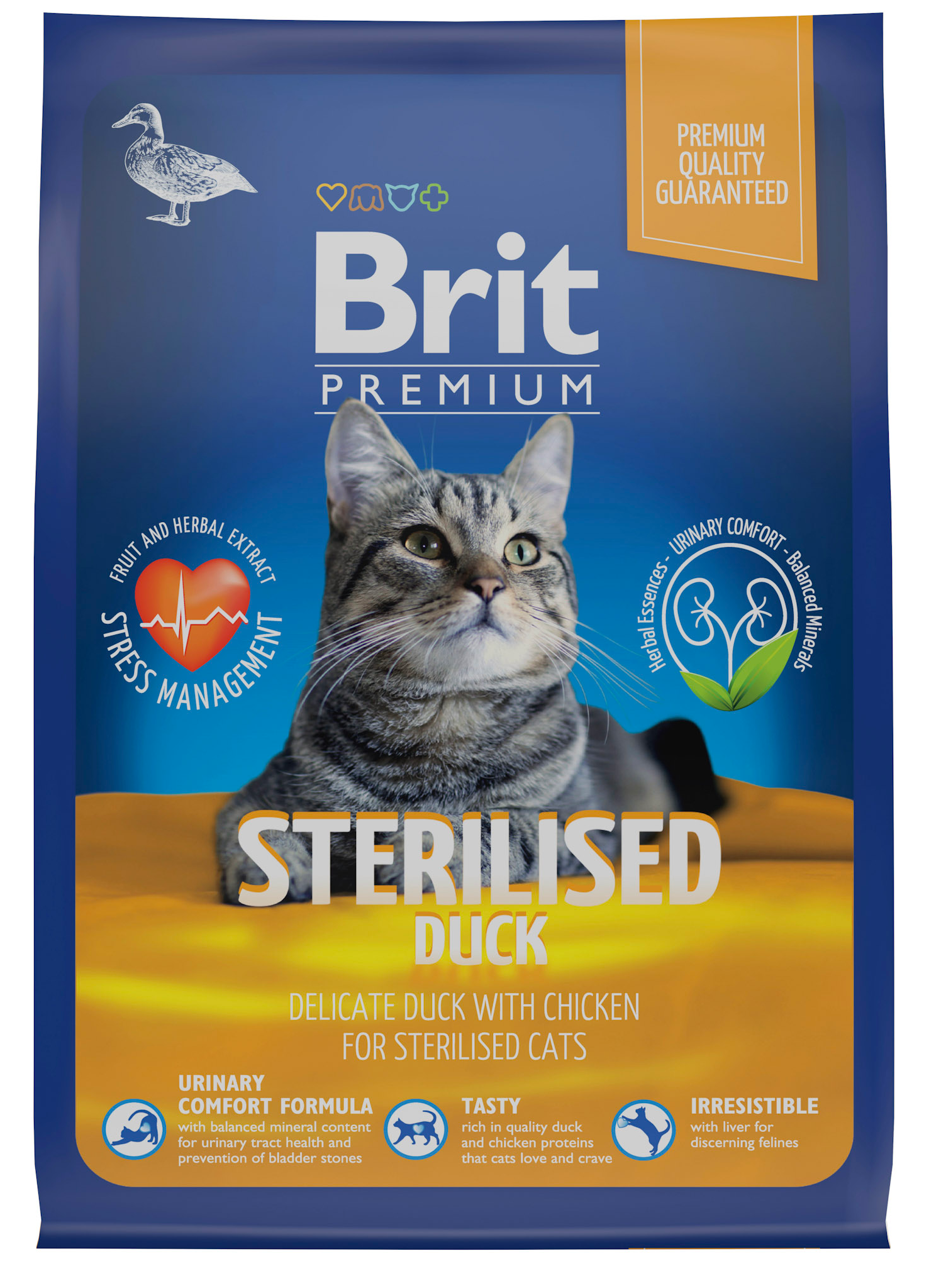 Корм для кошек Корм для кошек сухой Брит Premium Cat Sterilised Duck & Chicken для взрослых стерилизованных животных, гранулы с уткой и курицей 400г / кошачья еда