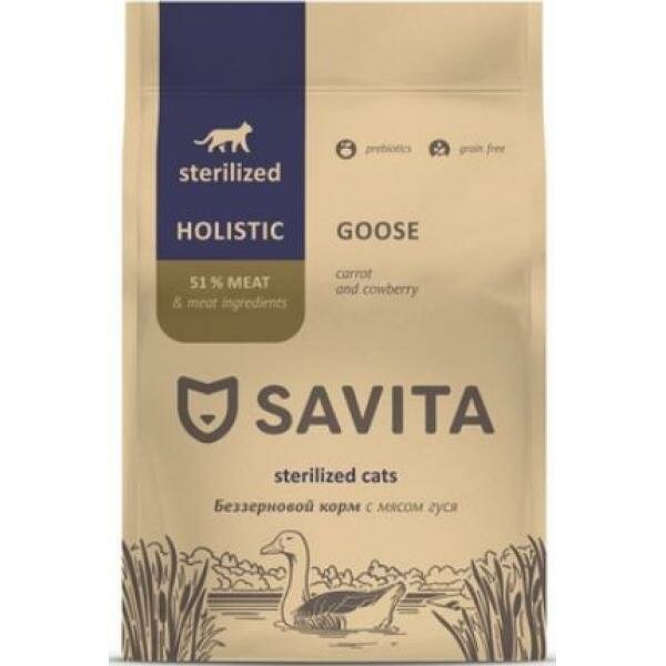 Корм для кошек Сухой корм SAVITA для стерилизованных кошек с мясом гуся, 2 кг.