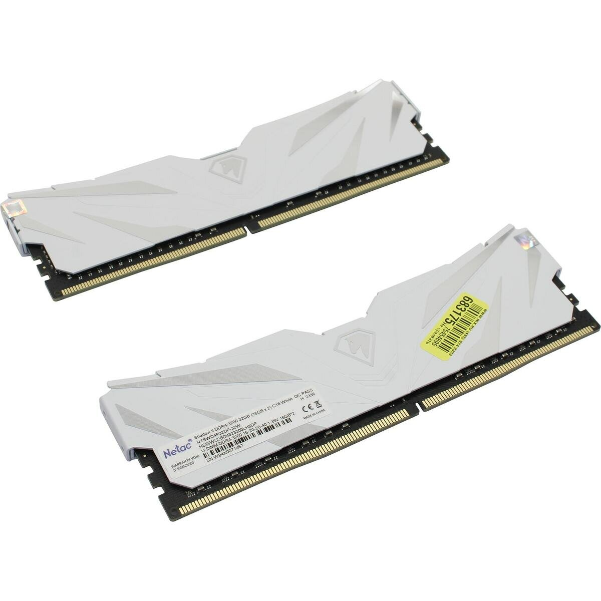 Оперативная память DDR4 Netac Shadow II 32GB (16Gbx2) 3200MHz PC25600 CL16, White с радиатором (NTSWD4P32DP-32W)