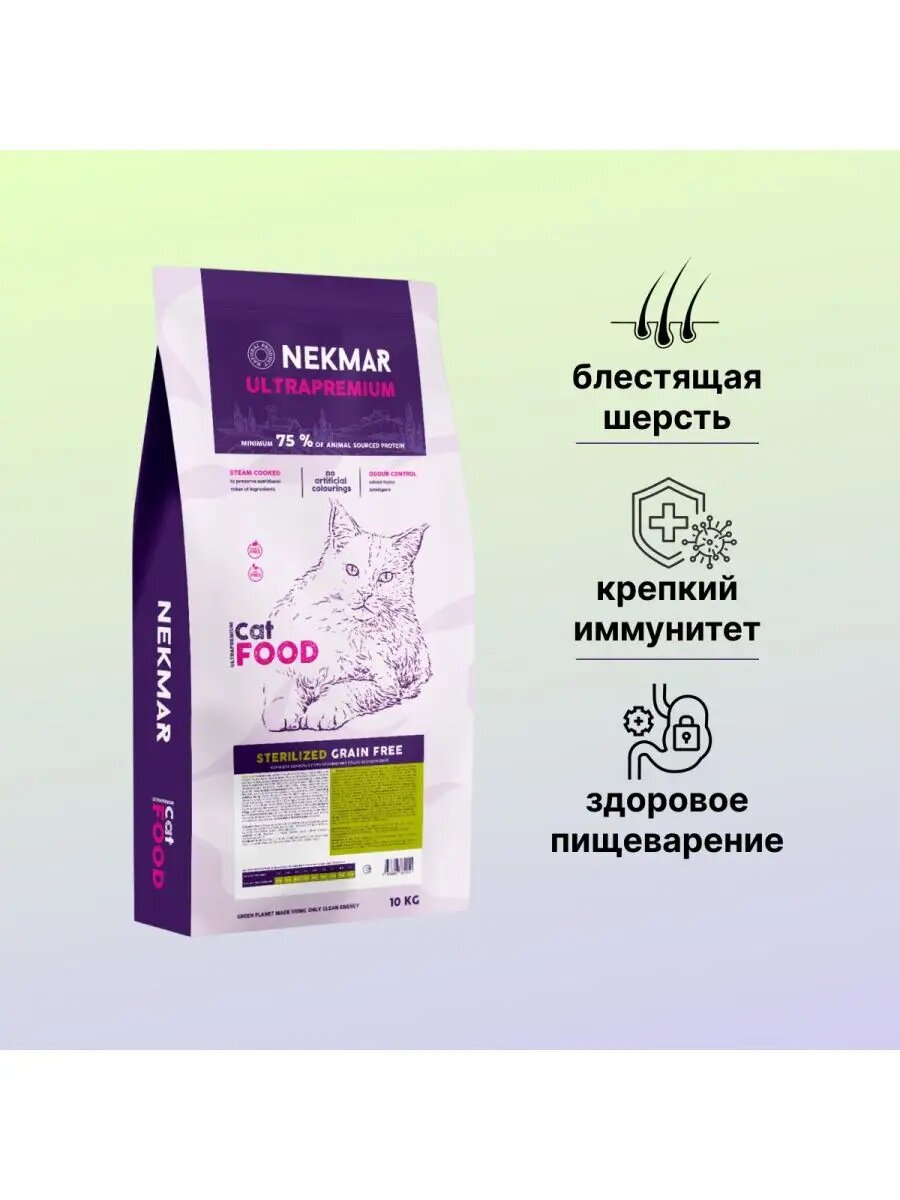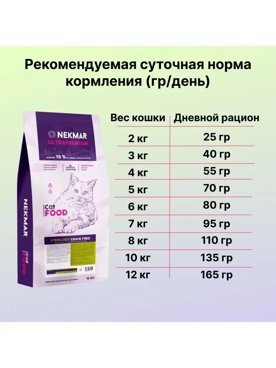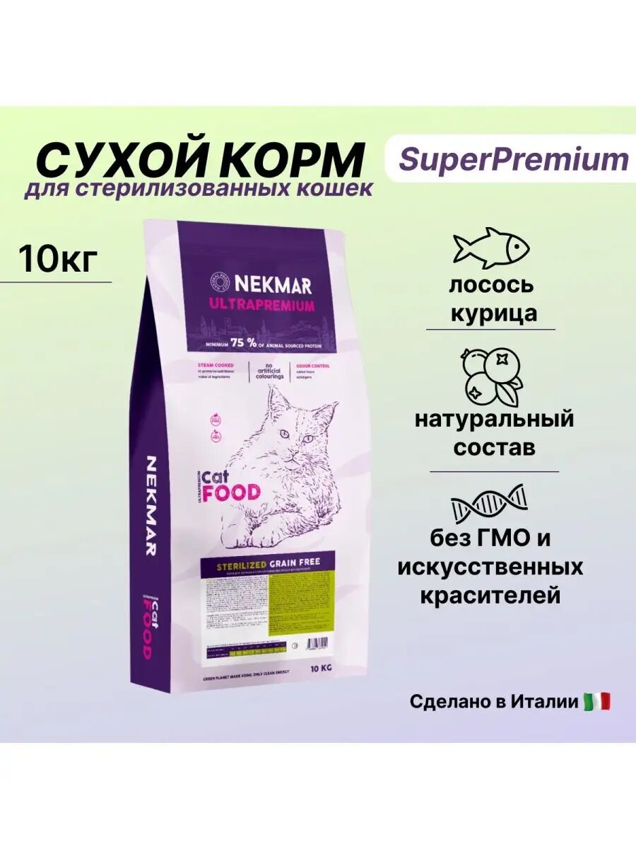 Корм для кошек Сухой корм для стерилизованных кошек Nekmar Cat Grain, 10 кг